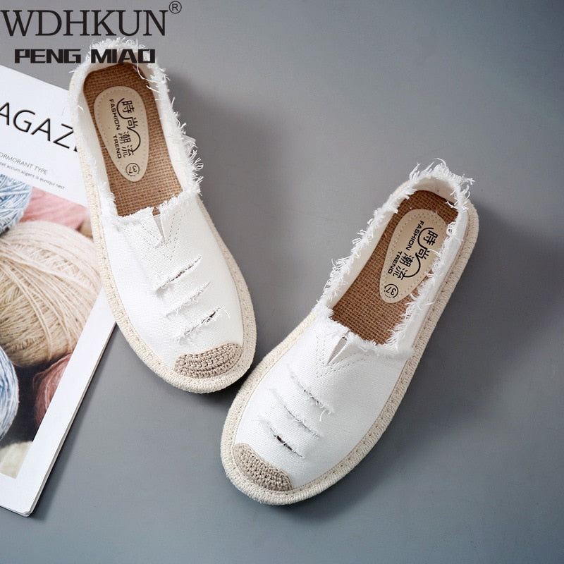 Summer Breathable Women's Canvas Shoes Fashion Slip On Lazy Ladies Loafers Flats Shoes Women New Casual Women's Shoes