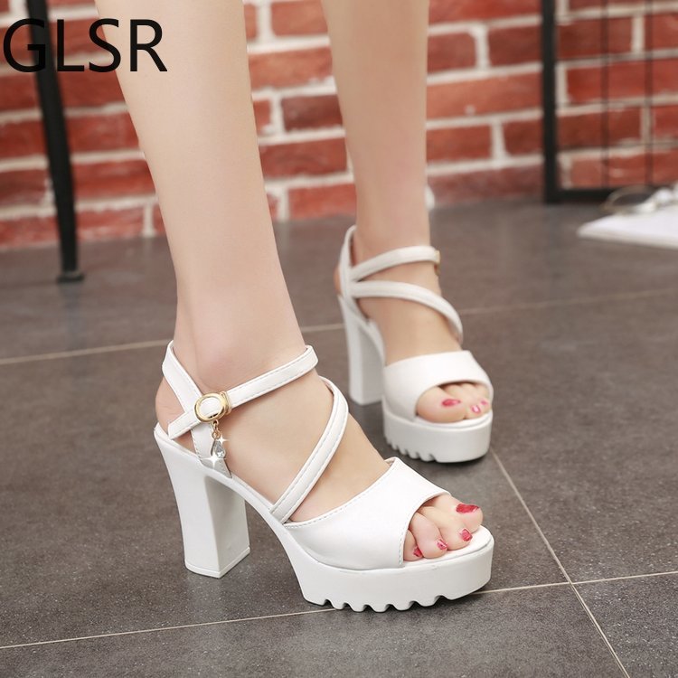 summer high heels sandals women thick platform shoes Woman Cross Platform Sandals Roman Ladies Shoes Gladiator Heel Pumps white