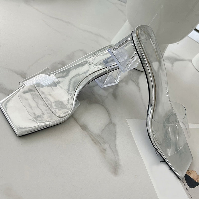 Summer Slippers Women Blue Green PVC Transparent Shoes Mules Slides Fashion Open Toe Clear Heels Beach Jelly Sandals Size 35-40