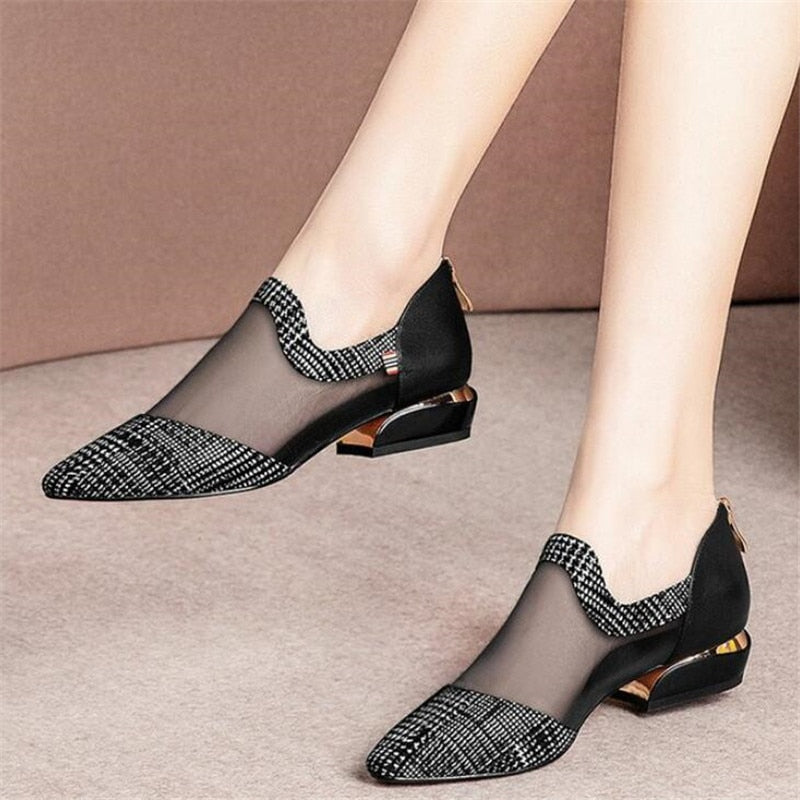 Summer Women High Heel Shoes Mesh Breathable Pumps Zip Pointed Toe Heels Fashion Female Dress Sandals Shoes Footwear 627
