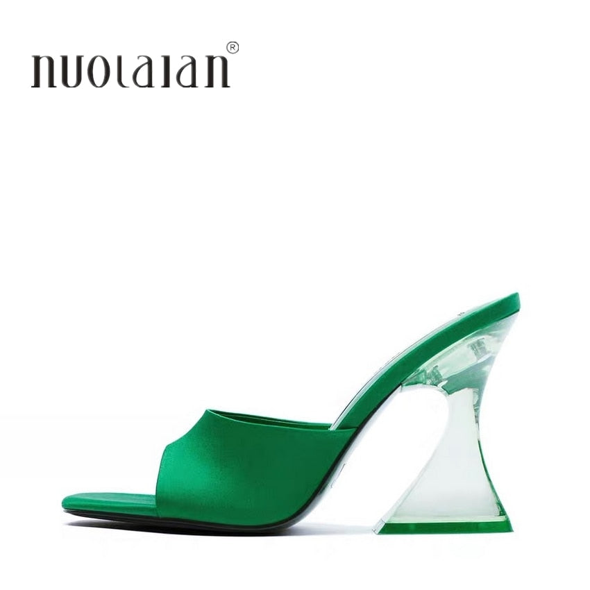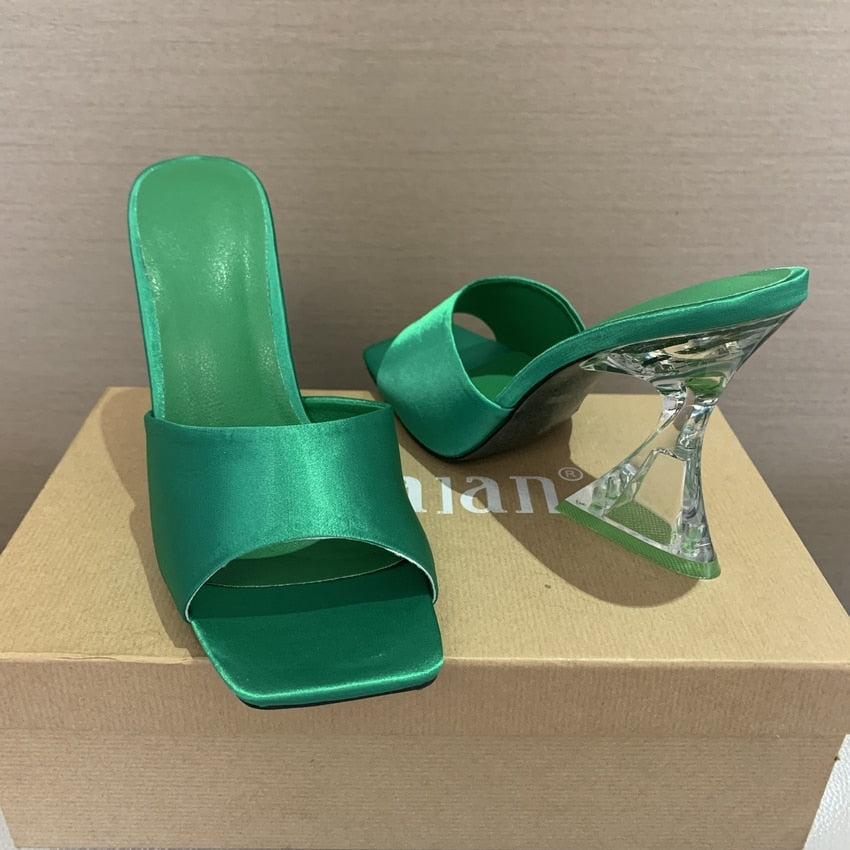 Summer Women Sandals Square Toe Ladies Transparent Heel Mules Sexy High Heels Sandal Slippers Female Fashion Woman Mules Shoes
