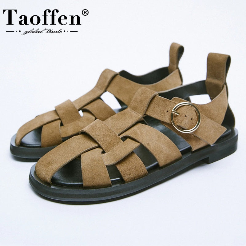 Taoffen 2022 New Women Sandals Real Leather Ins Summer Shoes Women Roman Fashion Daily Vacation Female Footwear Size 34-42