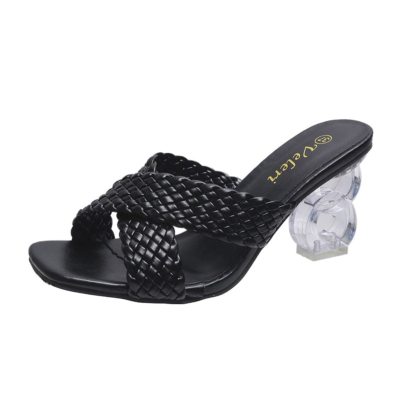 Transparent Strange High Heels Sandals Women Summer 2021 Plus Size Weave Female Slippers Fashion Yellow Open Toe Slides