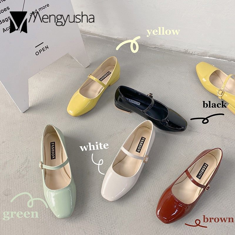 Vintage Square toe buckle band mary janes women loafers flat shoes woman ballerina slip on shallow solid low heels moccasins2020