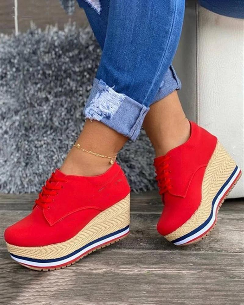 Vulcanize Shoes Women Sneakers Ladies Solid Color Wedge Thick Shoes Round Toe Lace-Up Comfortable Platform Sneakers 2021 Fashion