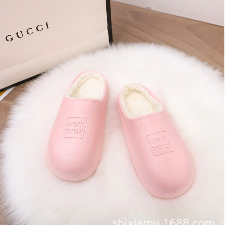 Waterproof Non-Slip Home Slippers Winter Warm Home Women Indoor Cotton Non-Slips Ladies Soft Slippers Memory Foam Couples Shoes
