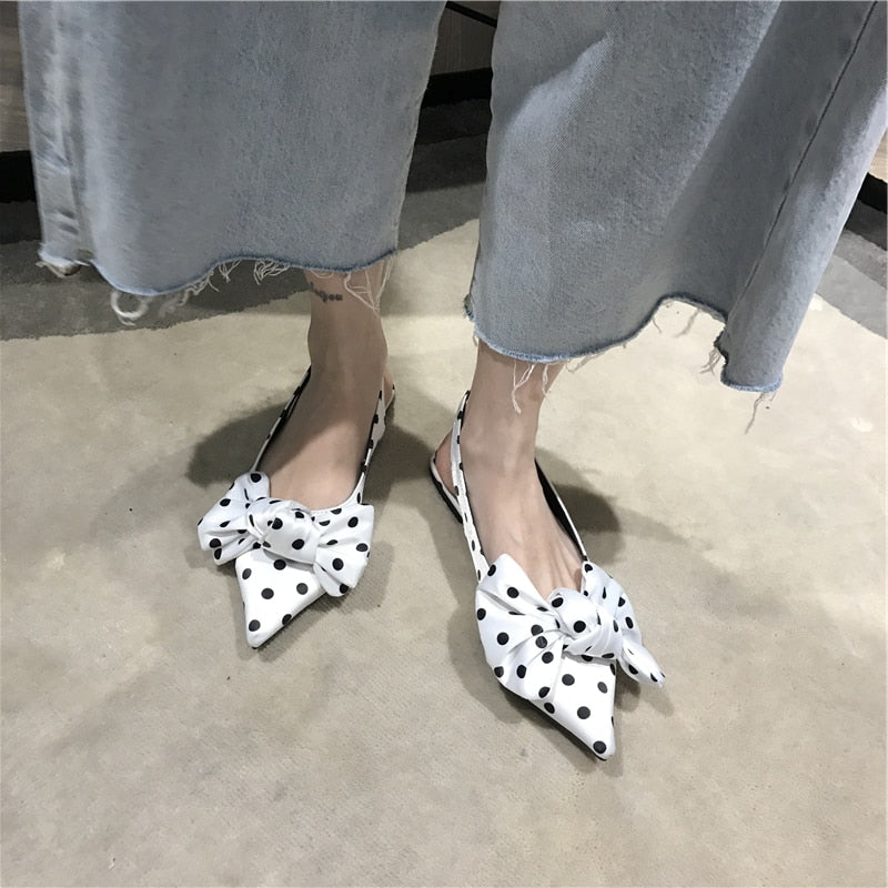 Wave Point Bow Roman Baotou Sandals Fairy Wind Shallow Mouth with Pointed Back Single Shoes