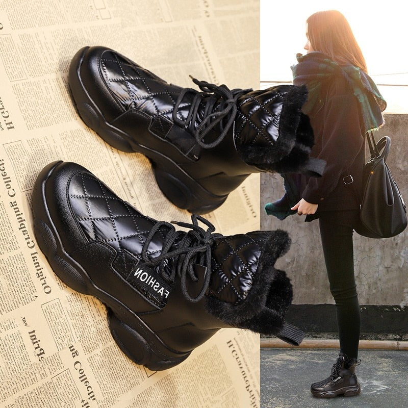 Winter Boots Women Snow Boots Chunky Sneakers Lace Up Thick Bottom Fur Platform Waterproof Warm Women Shoes Woman Plus Size
