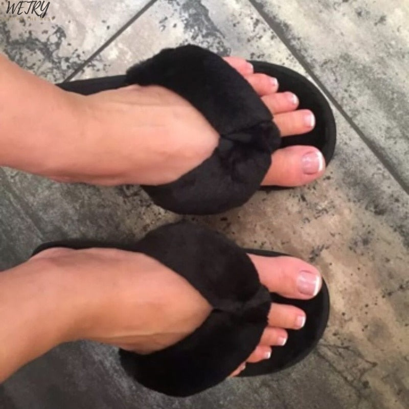 Winter Home Fur Slippers Women Faux Flur Flats Flip Flops Warm Luxury Slides Fashion Casual Shoes Ladies Female House Indoor