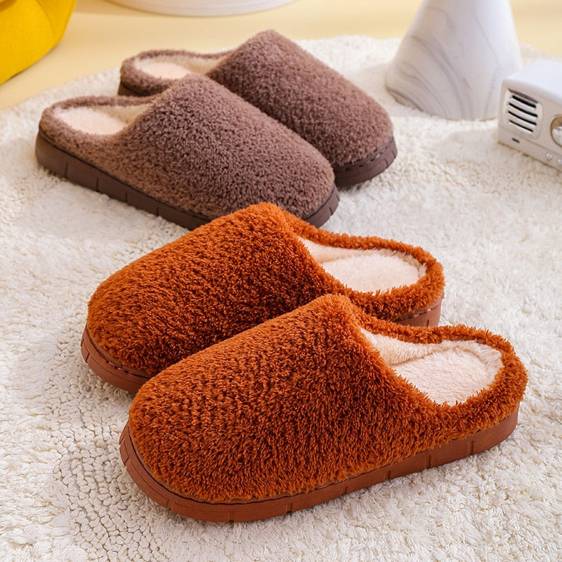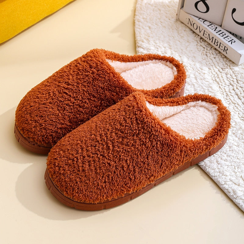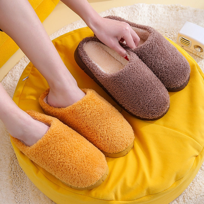 Winter Household Fur Slippers for Home Floor Slides Warm Plush Solid Color Family Slippers Shoes Soft Pantuflas Sandals