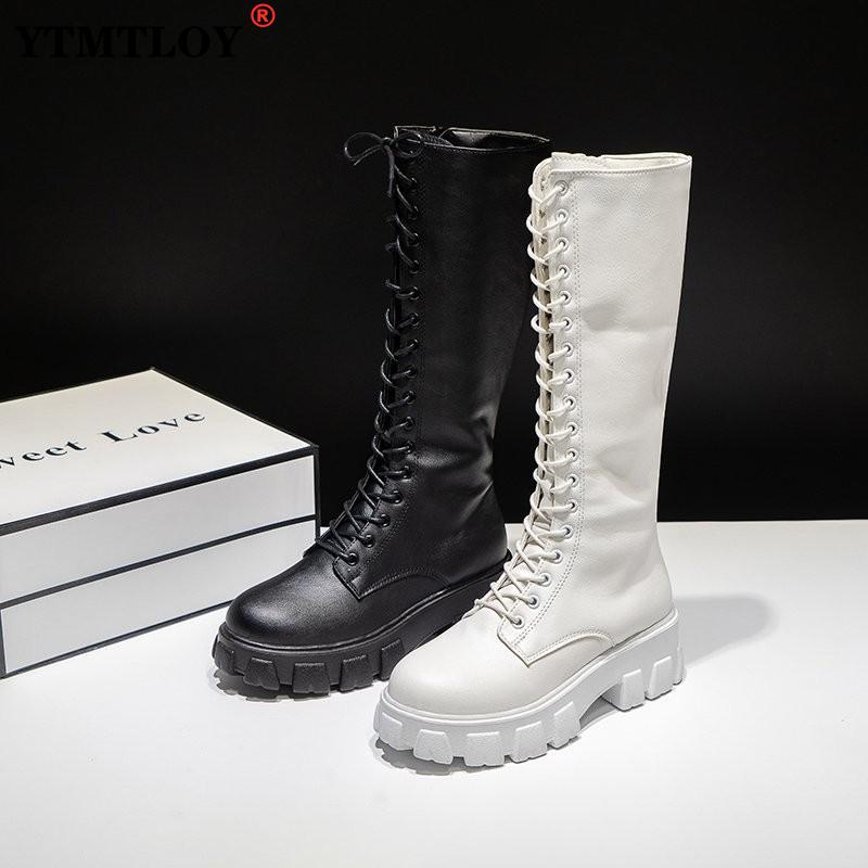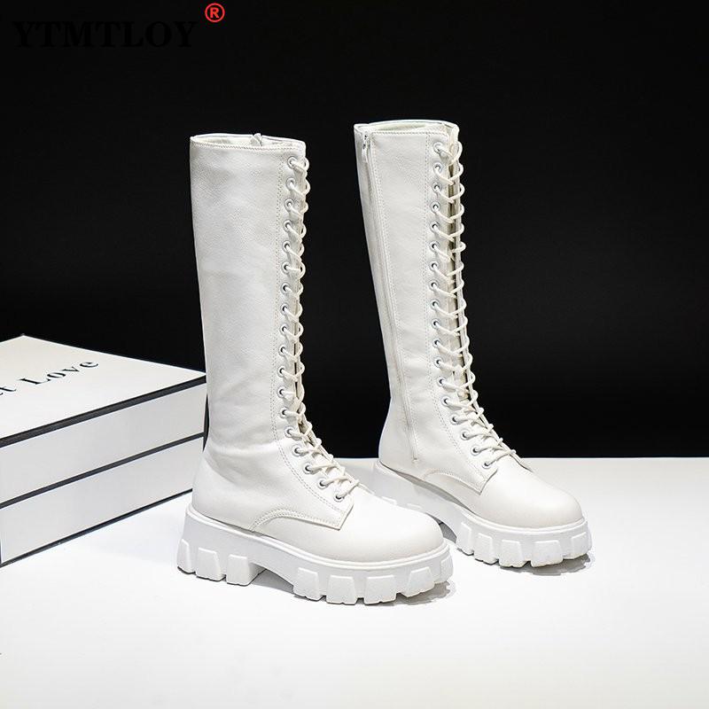 Winter Long Shoes Women White Lace Up Zip Height Increasing Pu Leather Plush Botas Mujer Big Size 43 Boots Platform Mid-calf