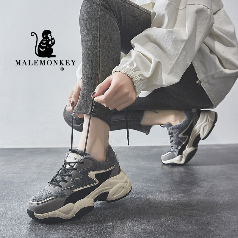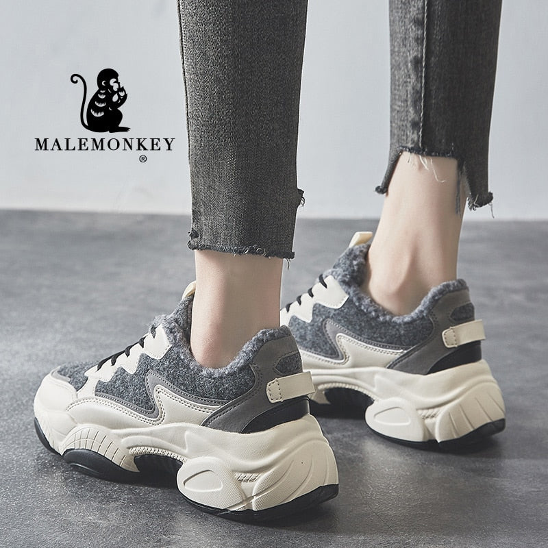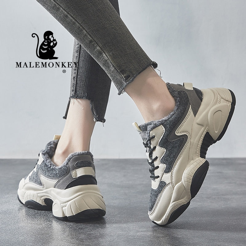 Winter Platform Sneakers Cacual Women Shoes Slip On 2021 Warm Plus Velvet Lace Up Outdoor Breathable Running Sport Female Shoes