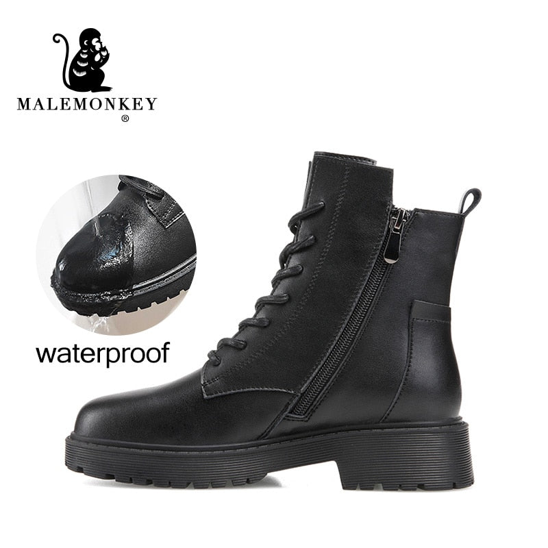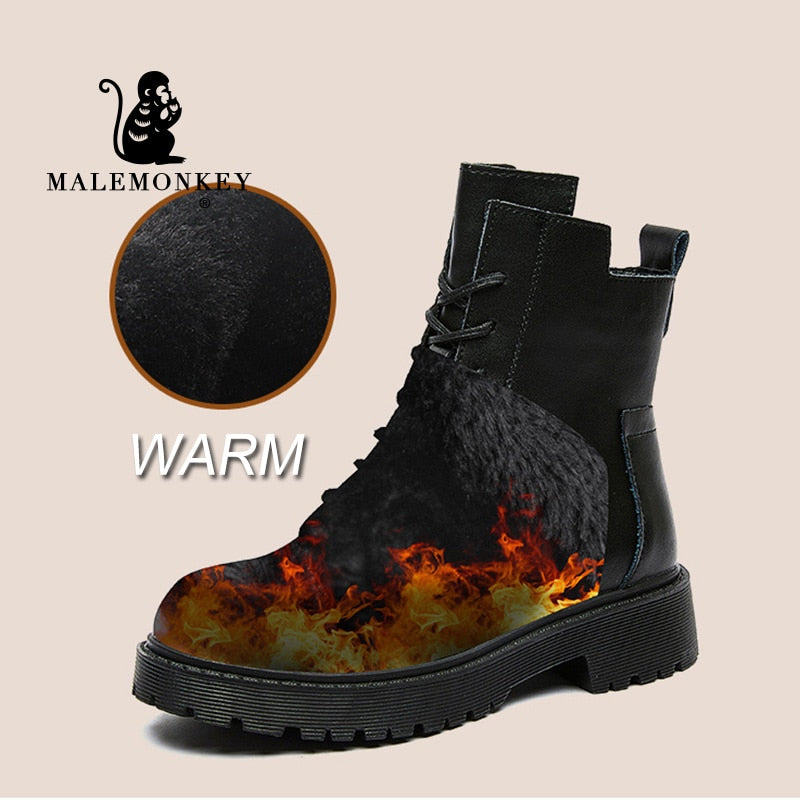 Winter Women Ankle Boots Black Platform 2021 Fashion Autumn Warm Fur Motorcycle Non-slip Waterproof Female Shoes Chunky Boots