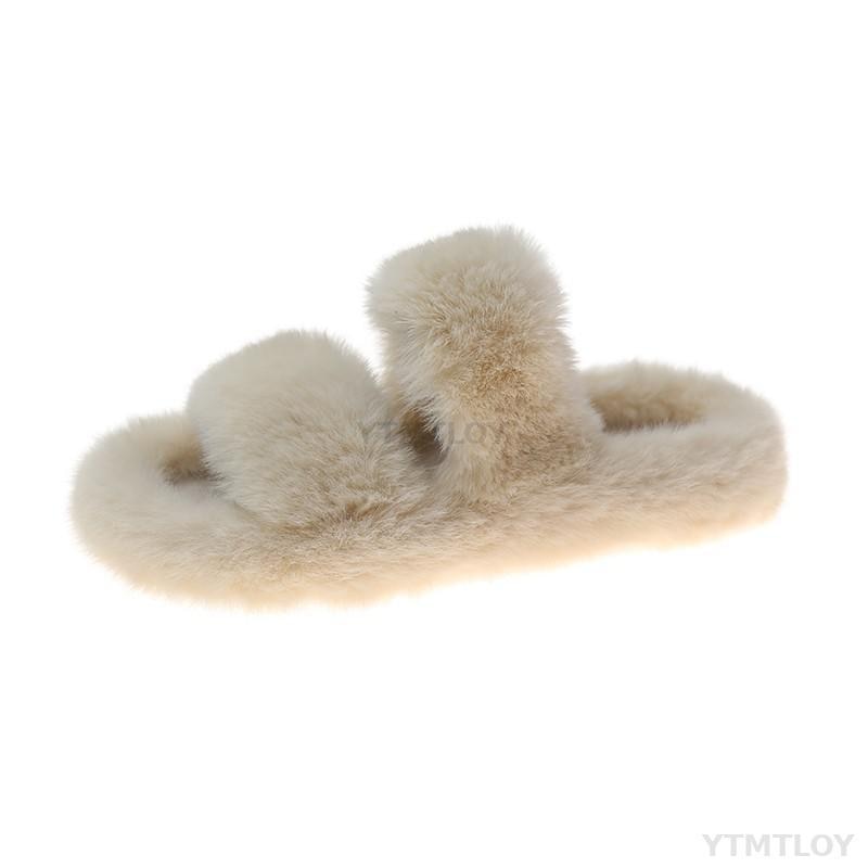 Winter Women House Furry Slippers Fashion Faux Fur Warm Shoes Slip On Flats Female Home Slides Black Plush Indoor Ytmtloy