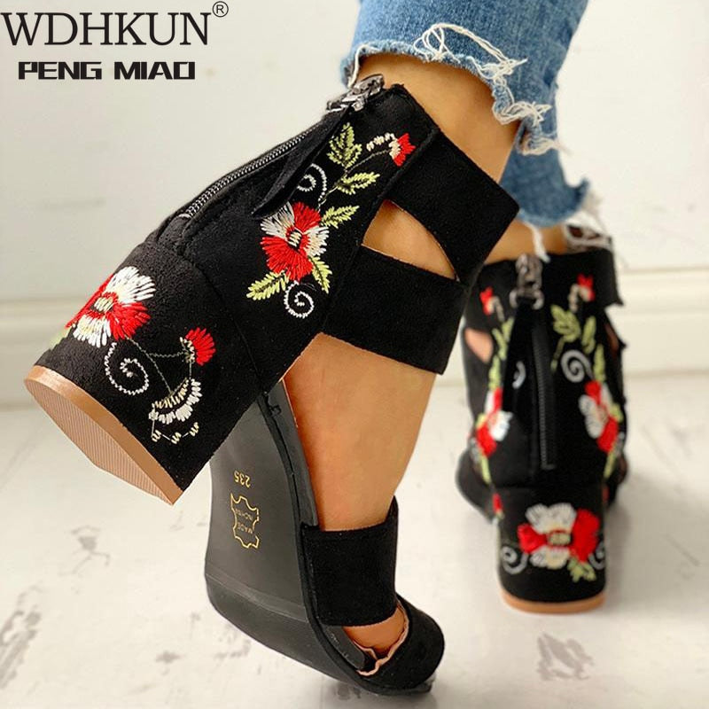 Woman Pumps High Heels Elastic Band Zipper Rubber Open Toe Embroider Dancing Party Wedding Ladies Shoes Zapatos Mujer