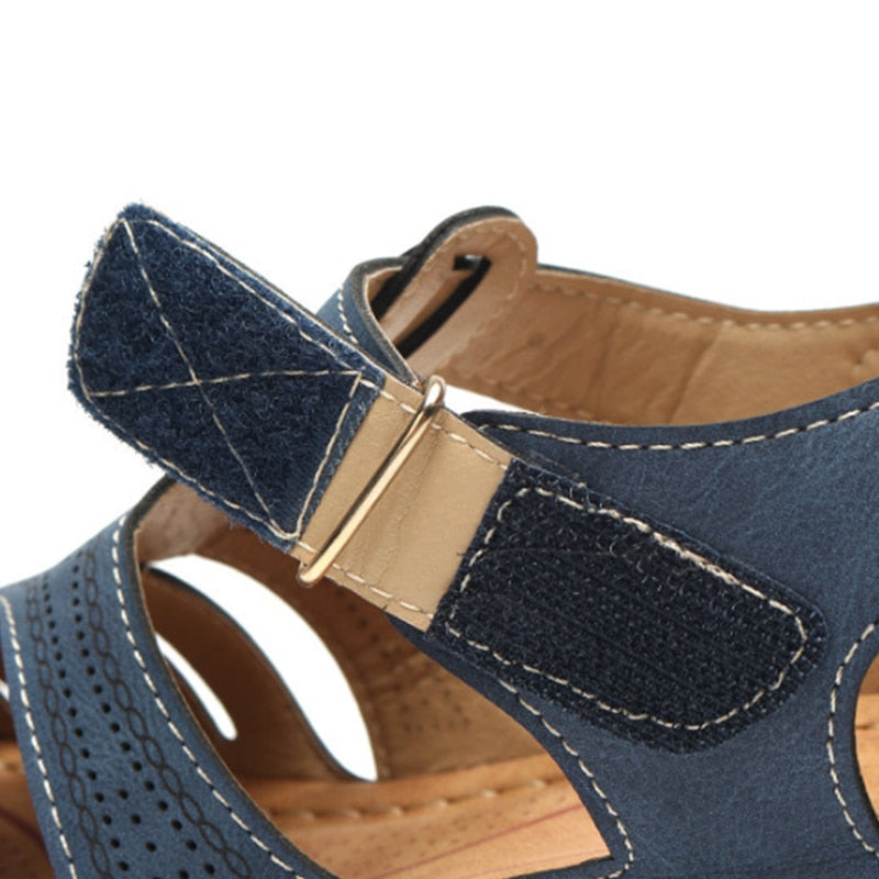 Woman Summer Leather Vintage Sandals Buckle Casual Sewing Women Shoes Female Ladies Platform Retro Sandalias Plus 35-44
