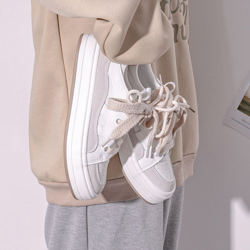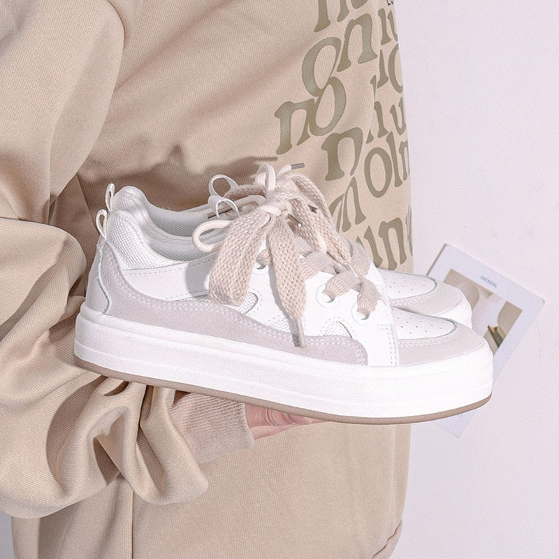 Women's Shoes 2022 New Fashion Spring Thick-Soled Women Sneakers Breathable Korean Style Low-top Comfy Casual Platform Shoes