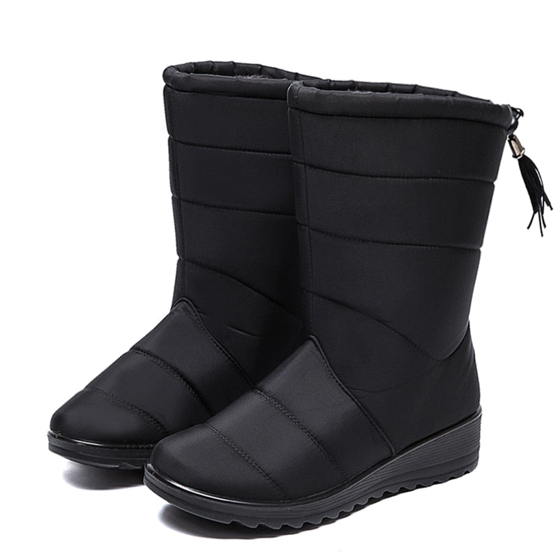 Women Boots Fur Warm Mid-Calf Boots Women Waterproof Shoes Ladies No-Slip Women Flat Shoes Fashion Female Boots Zapatillas Mujer