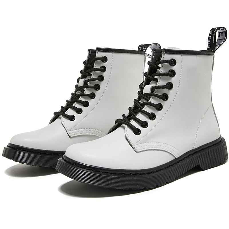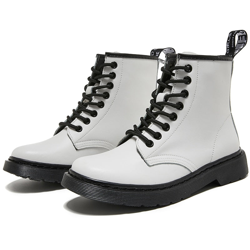Women Boots Soft Leather Shoes Woman White Ankle Boots Motorcycle Boots Female Autumn Winter Shoes Punk Botas Mujer 2020 Spring