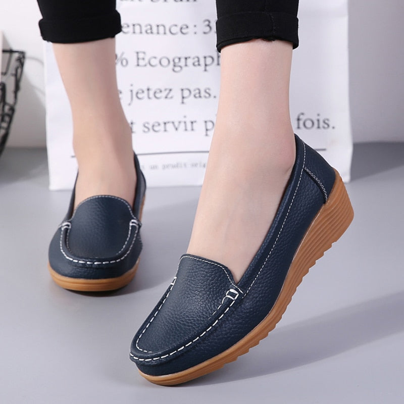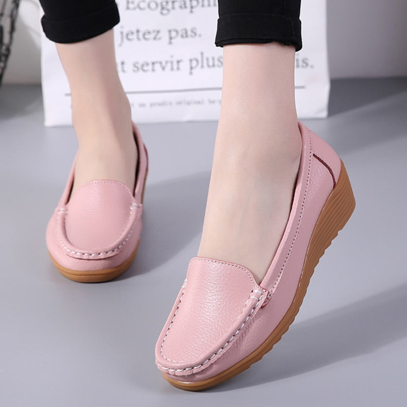 Women Flats 2022 Spring Summer Shoes Women Heels 4.3CM Genuine Leather Chaussures Femme Casual Women Loafers Ballet Flat Shoes