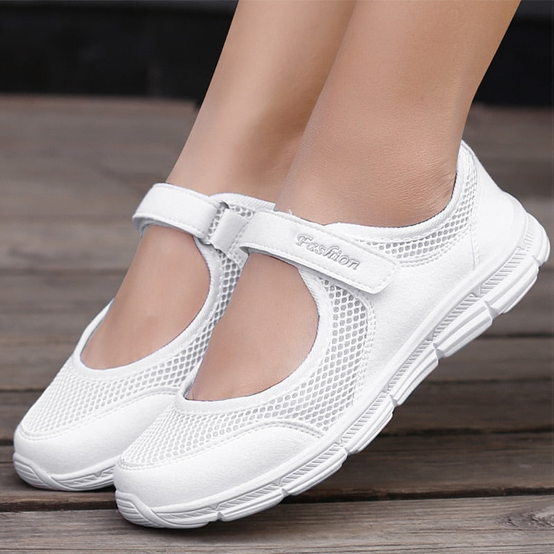 Women Flats Breathable White Shoes Women Lightweight Zapatillas Mujer Spring Autumn Flat Shoes Plus Size Casual Sneakers Female