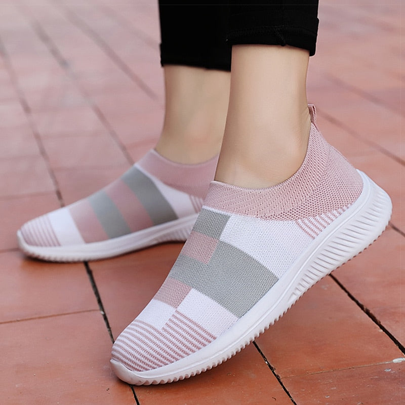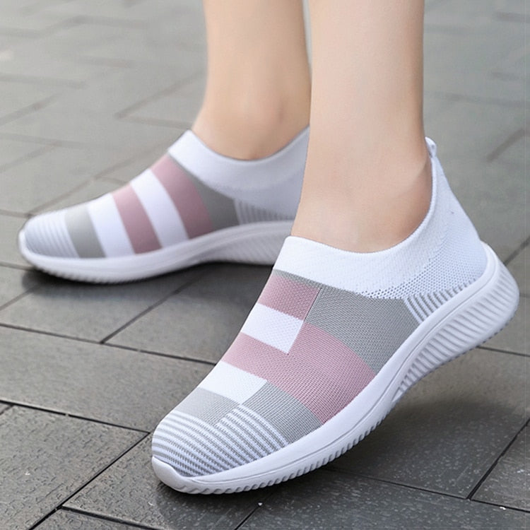 Women Flats Mix Color Knitted Sneakers Women Slip On Flat Shoes Woman Plus Size Casual Chaussure Femme Summer Autumn Footwear