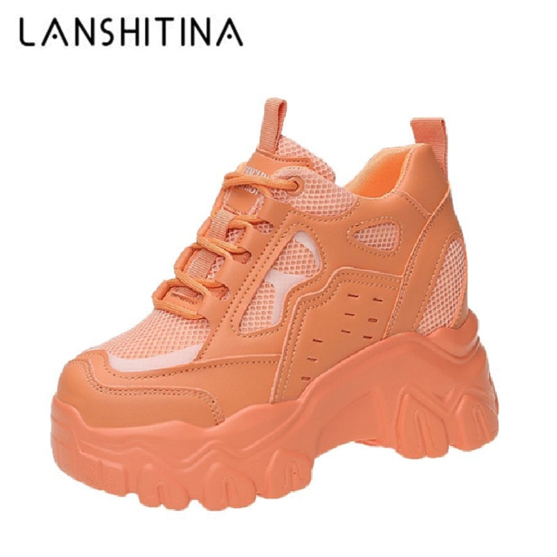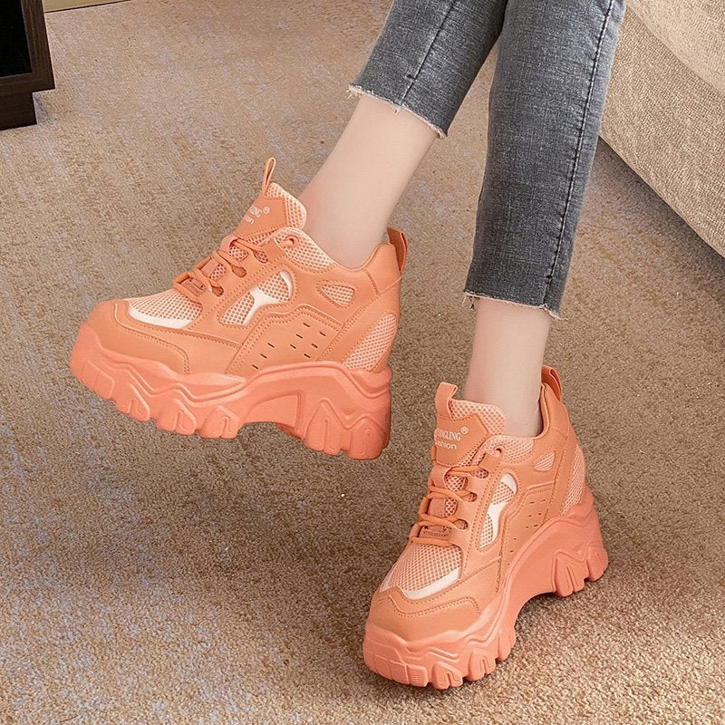 Women High Top Sneakers 2021 Spring Breathble Chunky Casual Shoes New Outdoor Thick Bottom Trend Women Vulcanized Dad Shoes 10cm