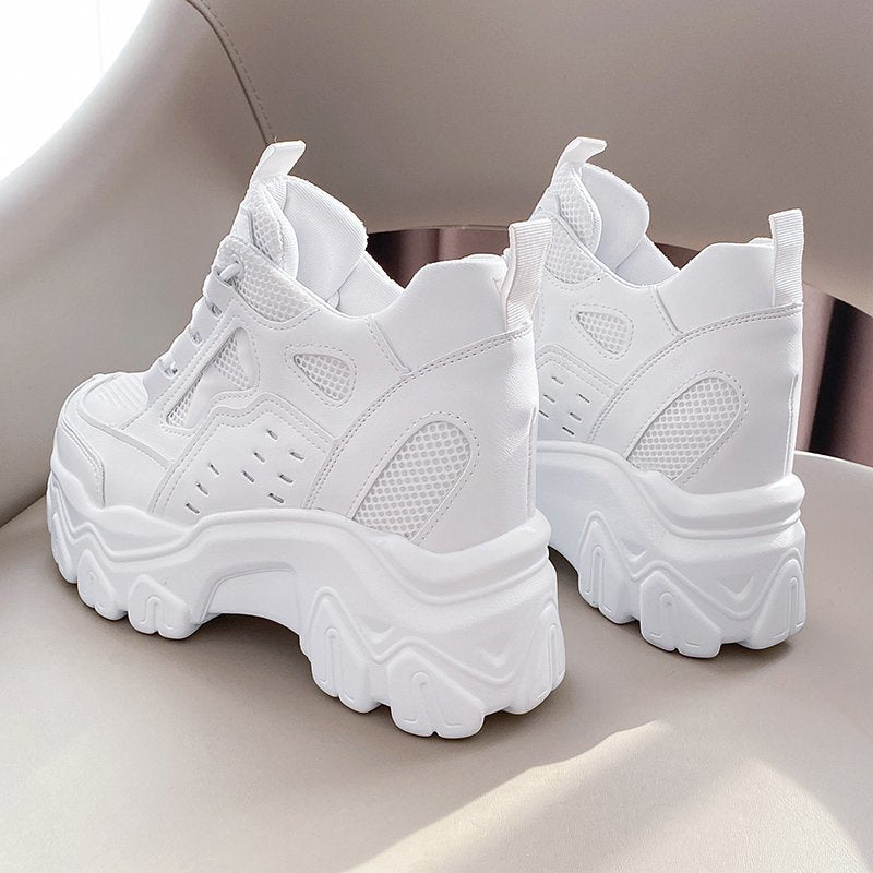 Women High Top Sneakers 2022 Spring Breathble Chunky Casual Shoes New Outdoor Thick Bottom Trend Women Vulcanized Dad Shoes 10cm