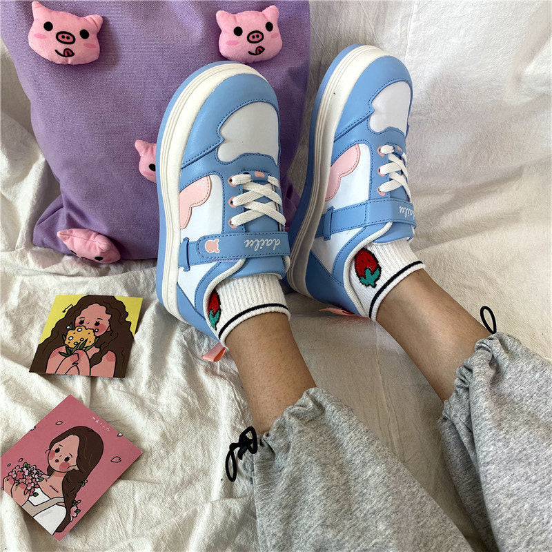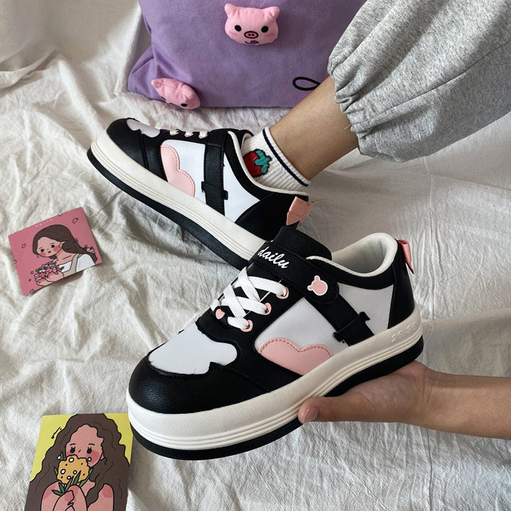 Women Lolita Sneakers Cartoon Patchwork Heart black blue Shoes Brand Breathable Thick Heels Sneakers Casual shoes Platform 2022