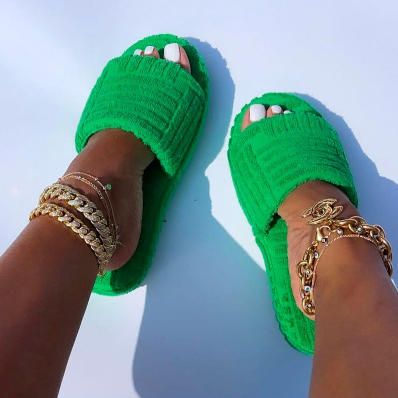 Women Modern Fashion Home Slippers Winter Platform Flat Fluffy Plush Slides Sexy Luxury Design Solid Non Slip Ladies Shoes House