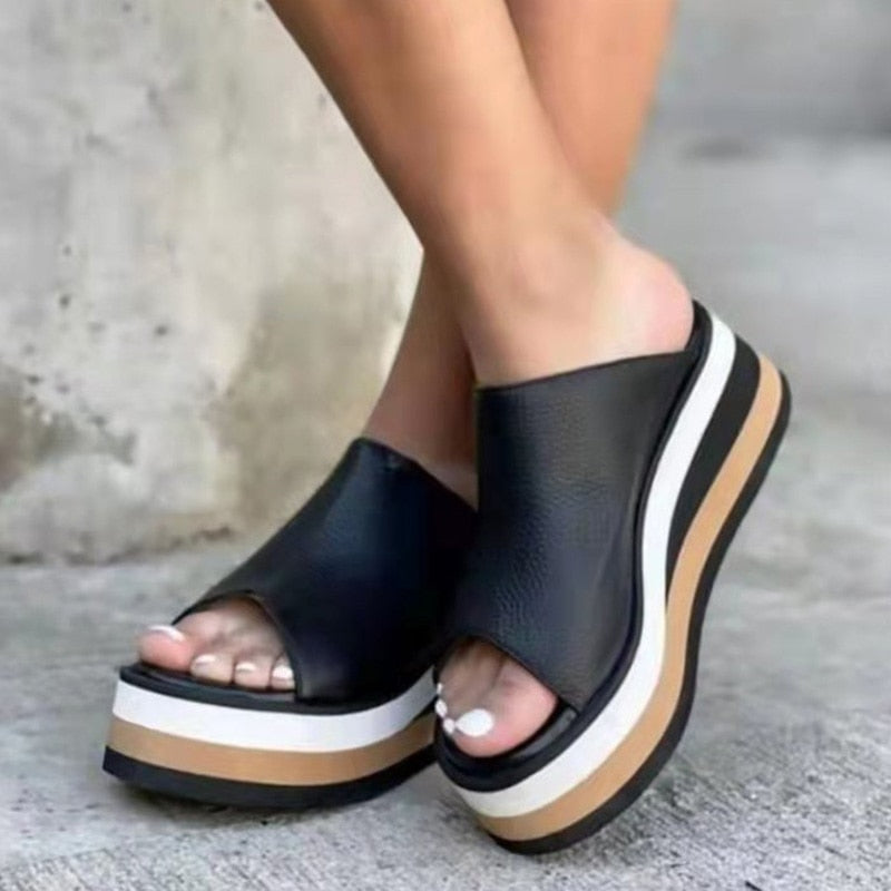 Women Open Toe Lightweight Comfortable Retro Sandals Woman Slip On Ladies Shoes Thick Bottom Wedge Footwear