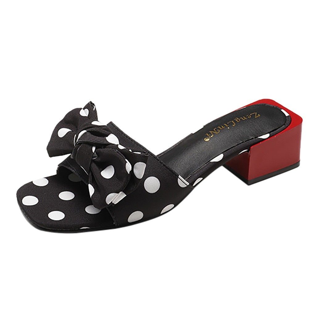 Women Peep Toe Casual Bow Knot Pot Square Heels Summer Slipper Slip on Breathable Beach Summer Sandals Shoes        X1217