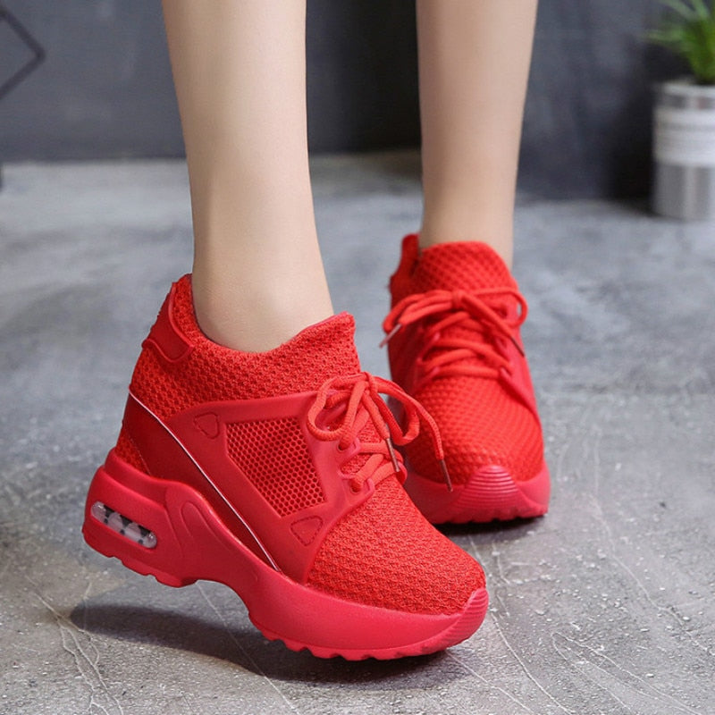 Women Platform Wedge Heels Casual Shoes Breathable Mesh High Heel Autumn Casual Shoes Height Increasing Woman Outdoor Shoes