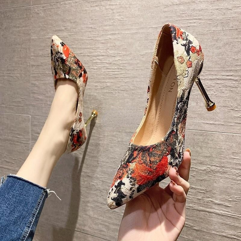 Women Pumps Female Casual Ladies Shoes Fashion Slip On Pointed Toe Party Zapatos De Vestir Mujer Classic Embroidery Flower