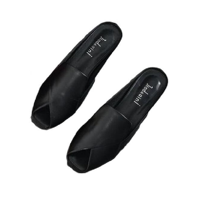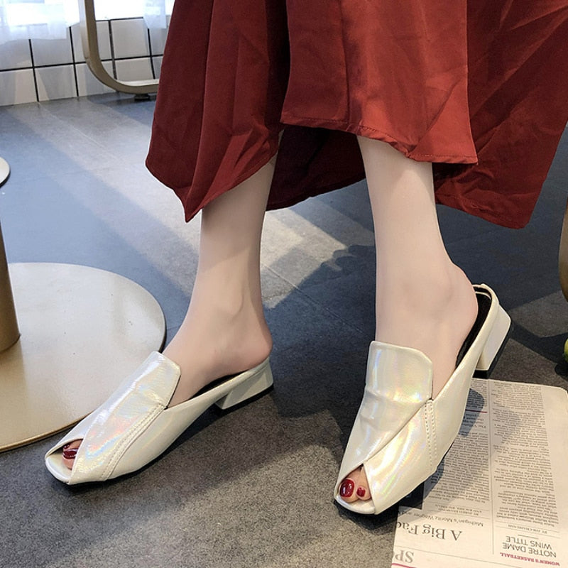 Women Slippers 2022 New Summer Fashion Peep-toe Sexy Shoes Med Heels Chunky Designer Slides PU Leather Sandals Party Flip Flops