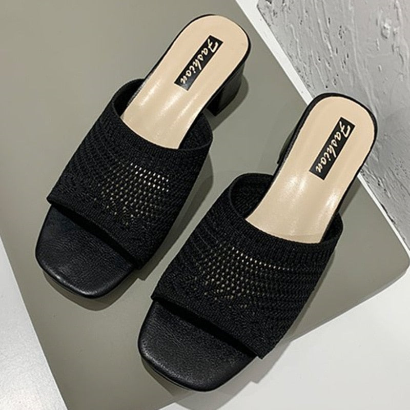 Women Slippers 2022 summer Fashion Fly Weave Outdoor Sandals Women Closed Toe Comfort Slippers Women Medium Heel Slippers