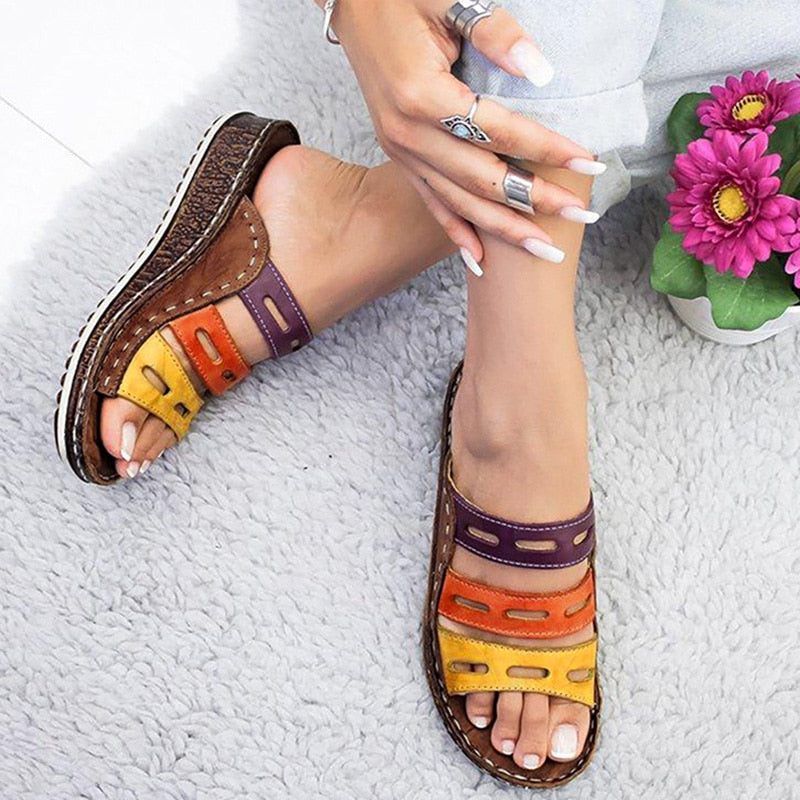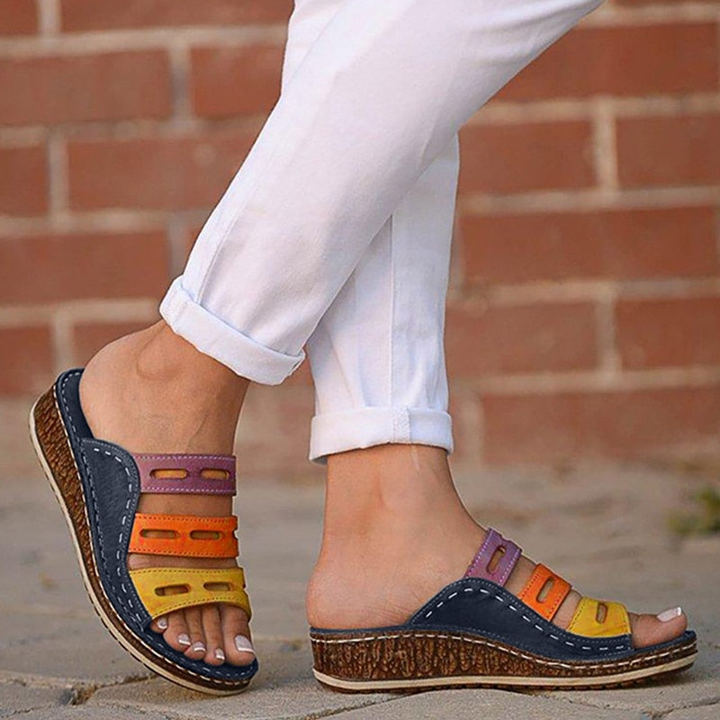 Women Slippers Fashion Summer Ladies Mixed Color Slip On Wedges Sandals Casual Slipper Comfort Beach Shoes Female Slippers