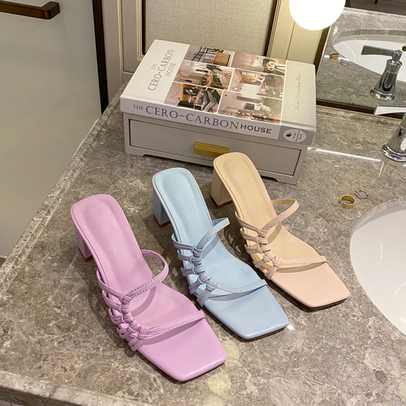 Women Slippers Sexy High Heels Outdoor Slides Women Summer Shoes Sandals Heels Female Square Toe Slipper Designer Brand Slippers