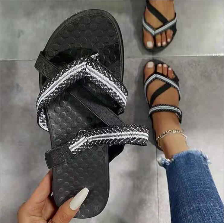 Women Slippers Summer Velcro Flat Sandals Women Closed Toe Women Arch Correction Slippers Casual Outdoor Flip Flops Plus Size 43