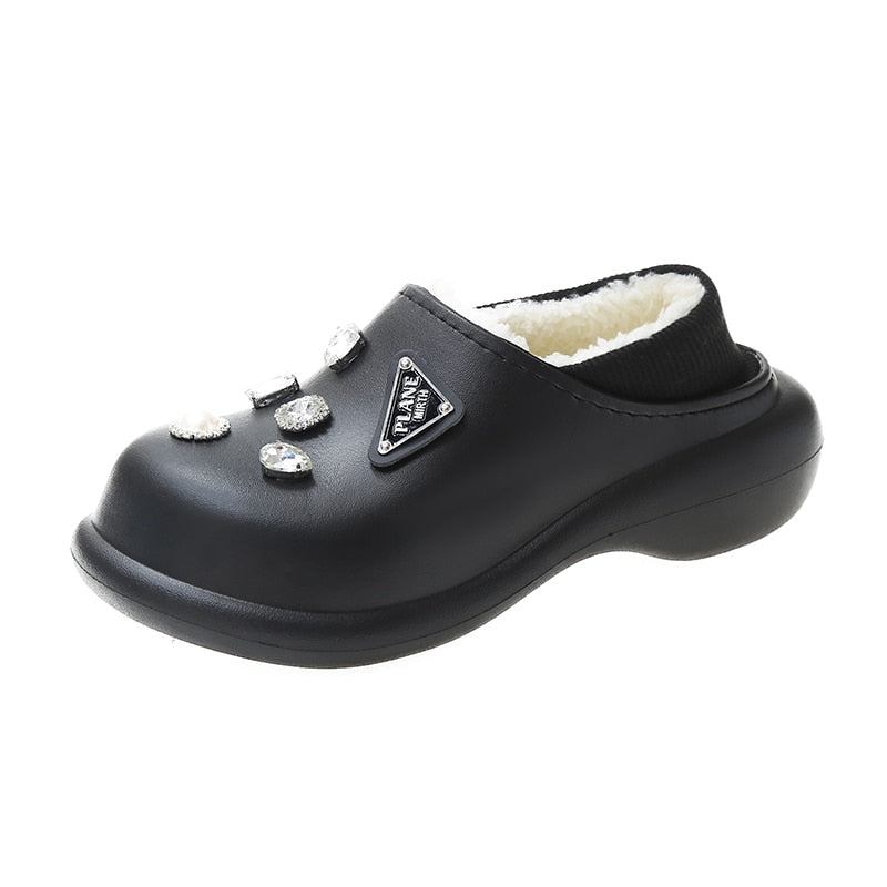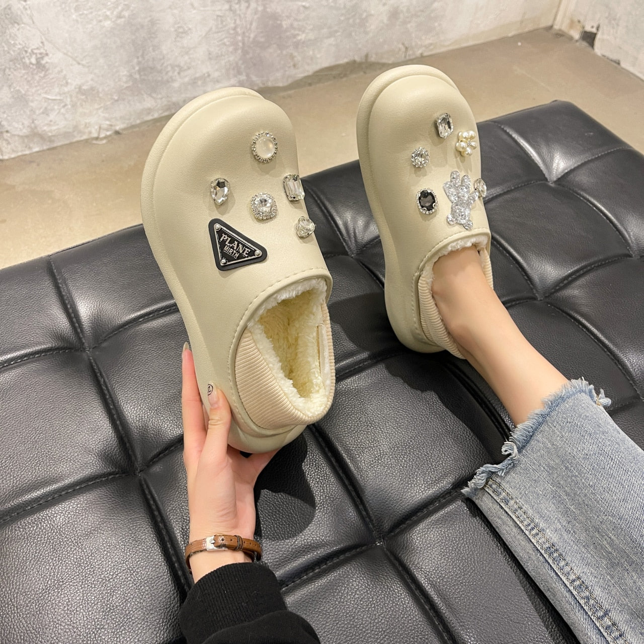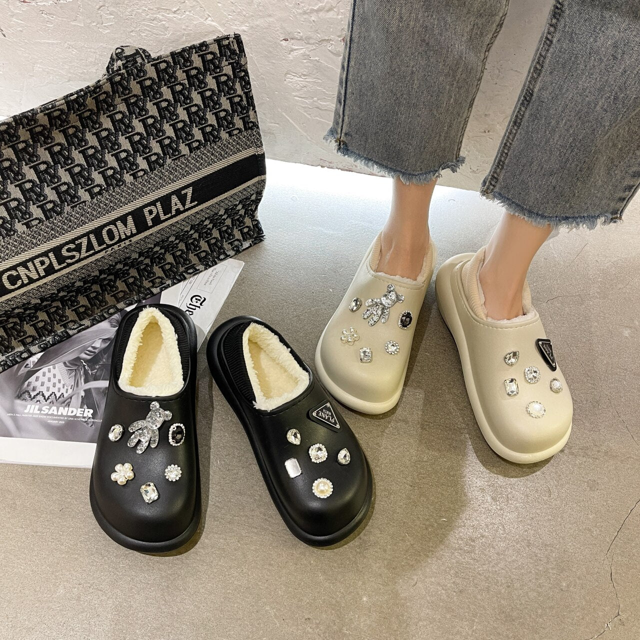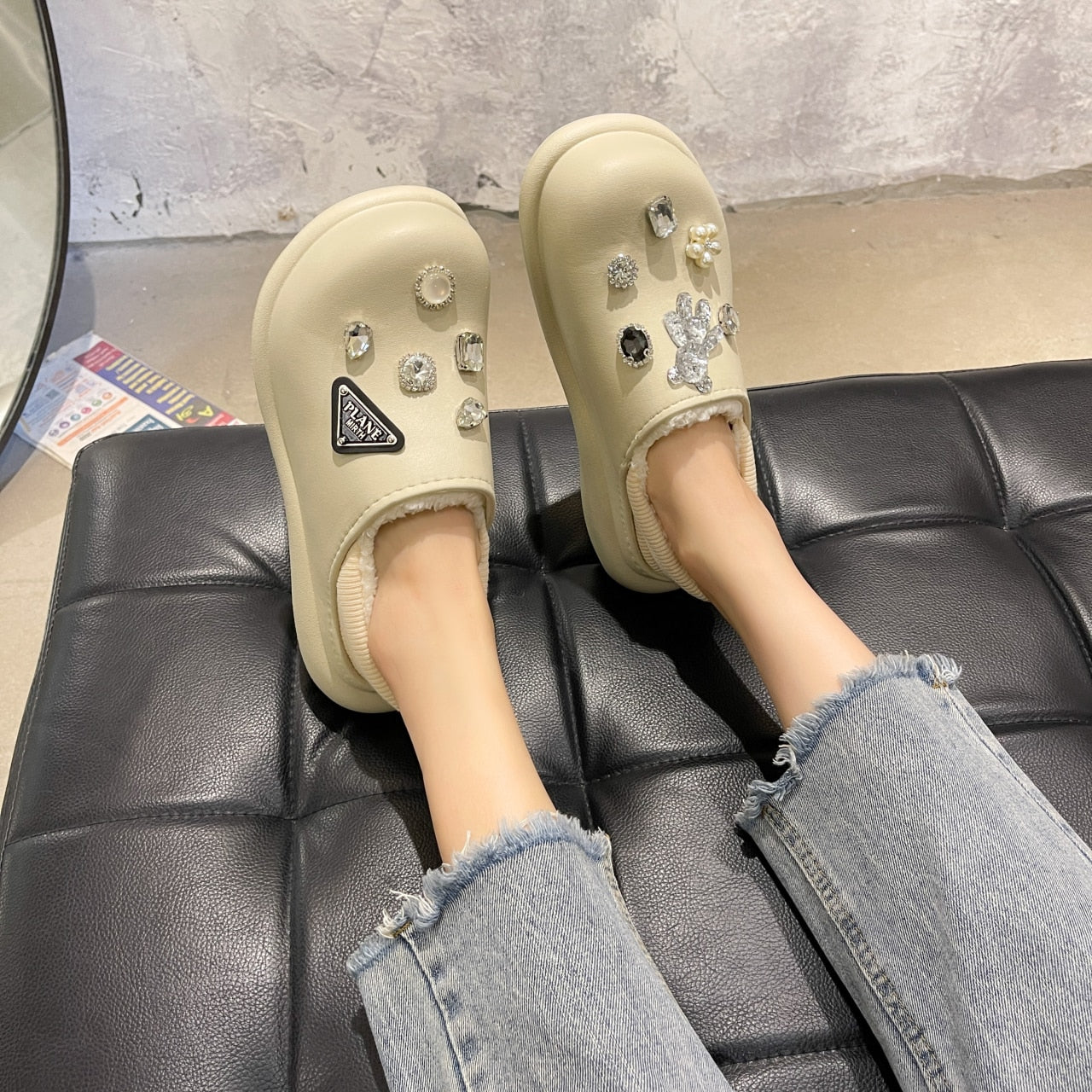 Women Trend Design Slides Hollow Out Shiny Rhinestone Pearl Platform Wedge Heel Round Toe Outdoor Beach Shoes Ladies 2021 NEW