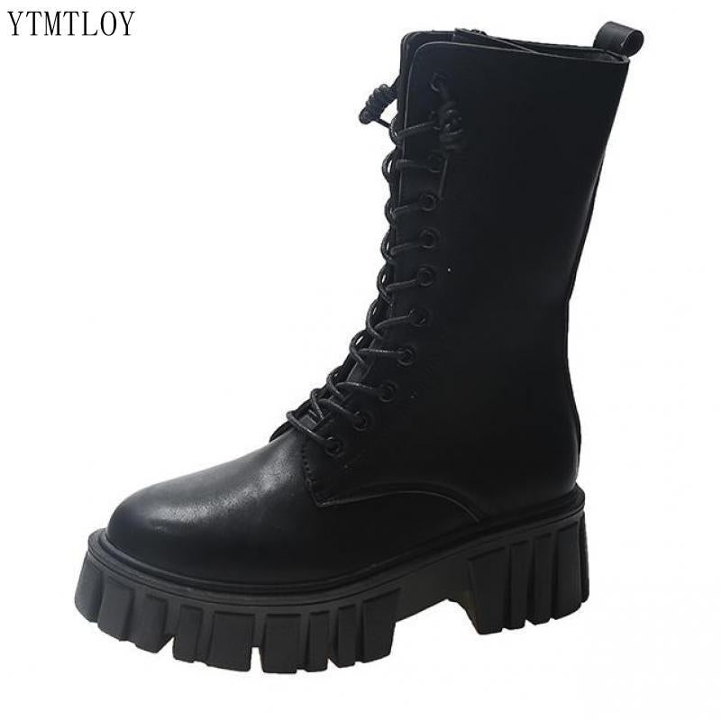 Women White Boots Autumn 2022 Fashion Black Leather Platform Gothic Punk Combat Shoes Ytmtloy Round Toe Botines De Mujer Sexy