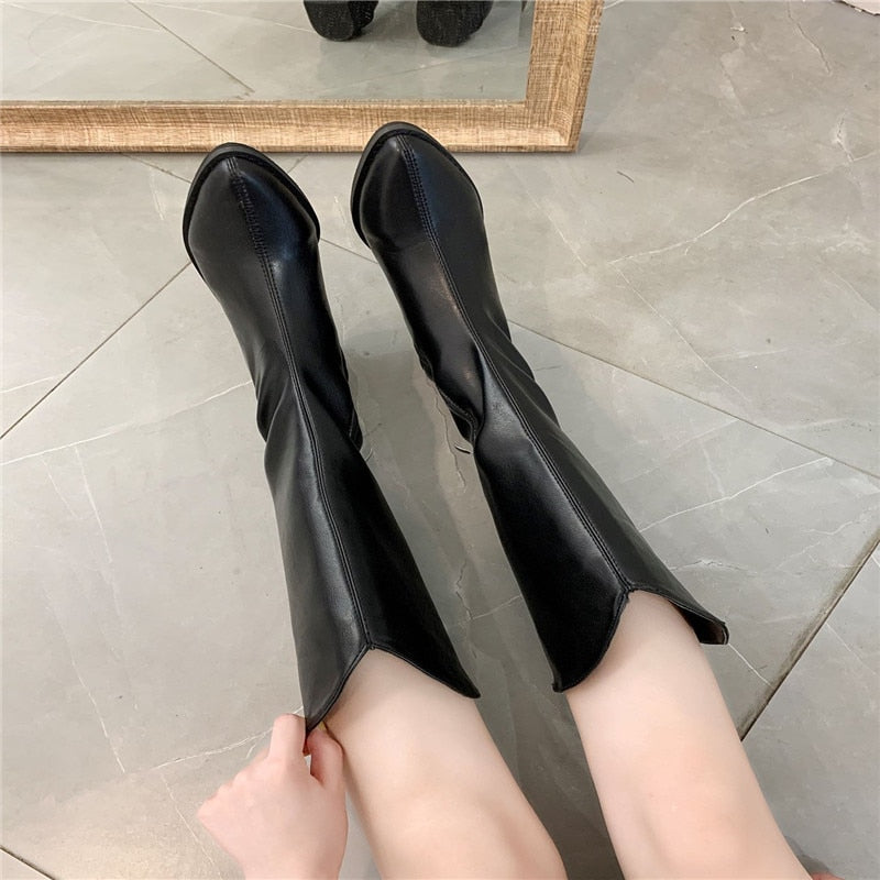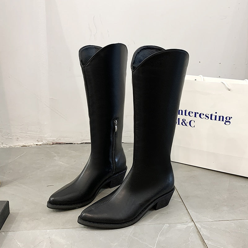 Women's Autumn Black Knight Leather Long Boots Pointed Thigh High White Boots Female Footwear zapatos de mujer Ladies Shoes Hot