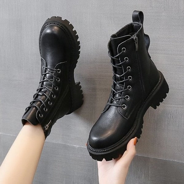 Women's boots autumn winter high Combat boots women Platform women Lace Up Woman Shoes Winter Biker Ankle Women's military Boots
