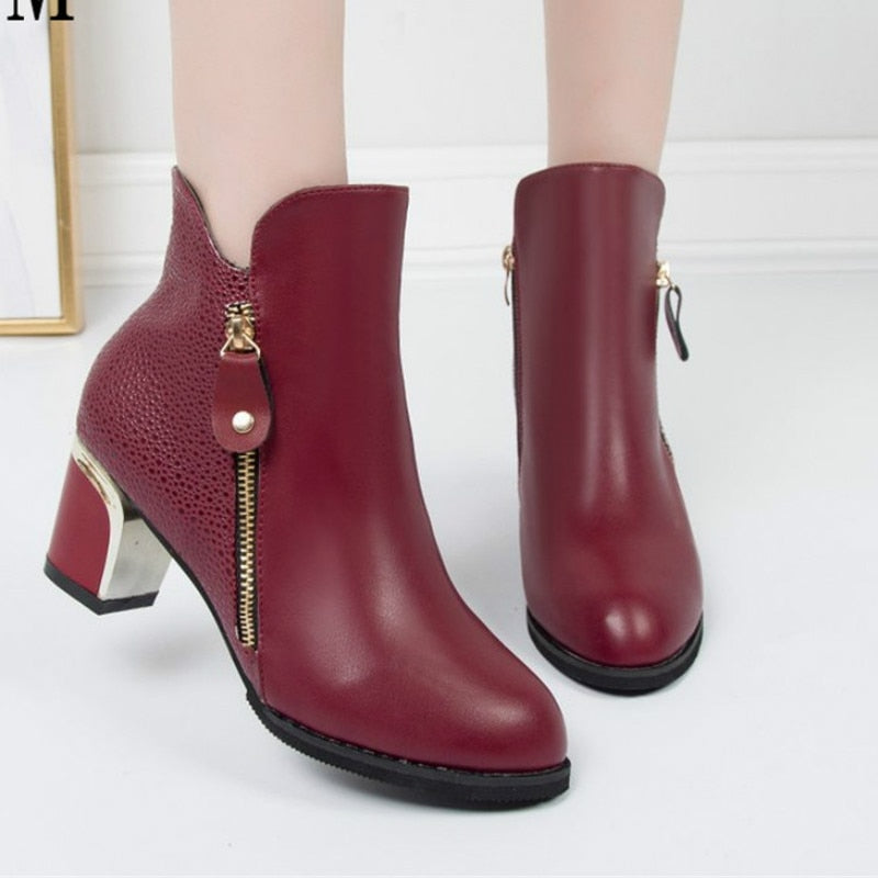 Women's Fashion Side Zipper Ankle Boots Autumn/ Winter Boots Pointed High Quality Solid Ladies Shoes PU High Heels Boots