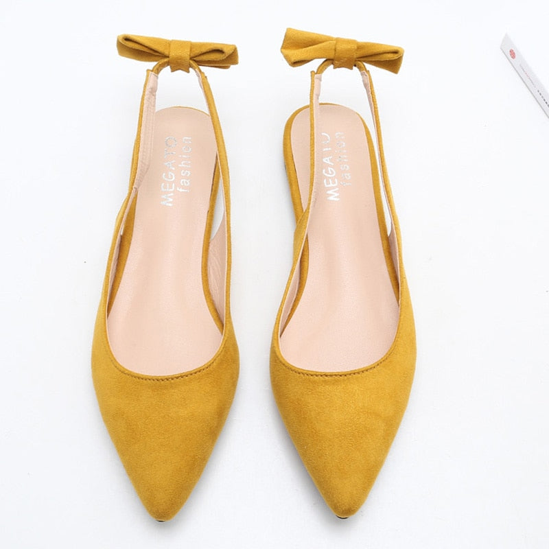 Women's Pointed-Toe Back Sandals A- line Elastic Band Back Bow Flat Sandals
