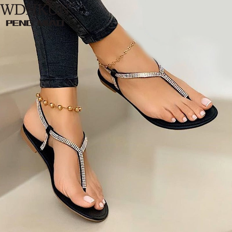 Women's Sandals Clip Toe Ladies Shoes T-tied Ankle Strap Large Size Femmes Sandales Beach Casual Female Summer 2021 Footwear New