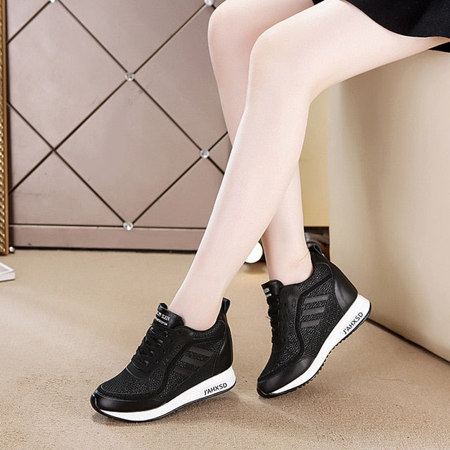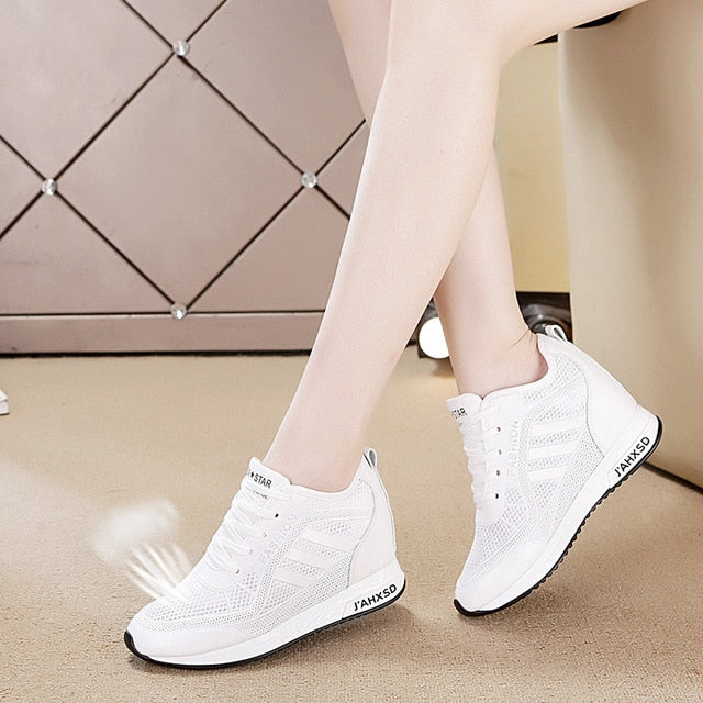 Women's Summer Sports Shoes White Tennis Female Wedge Casual Sneakers Women Platform Fashionable Leather Vulcanized Shoe Running